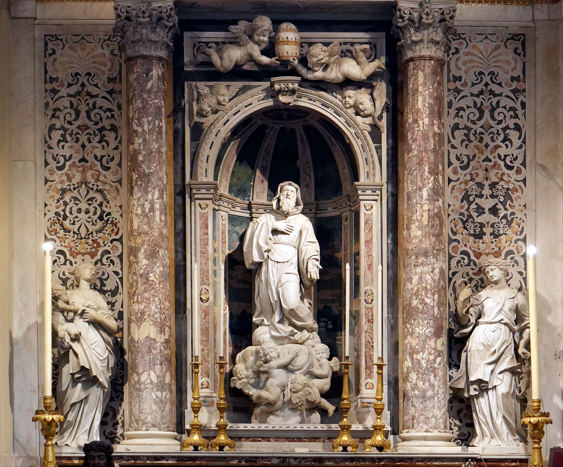 I tre bassorilievi del fronte dell'altare, opera di Giovan Battista Ragusa, riproducono momenti della vita del Santo.
