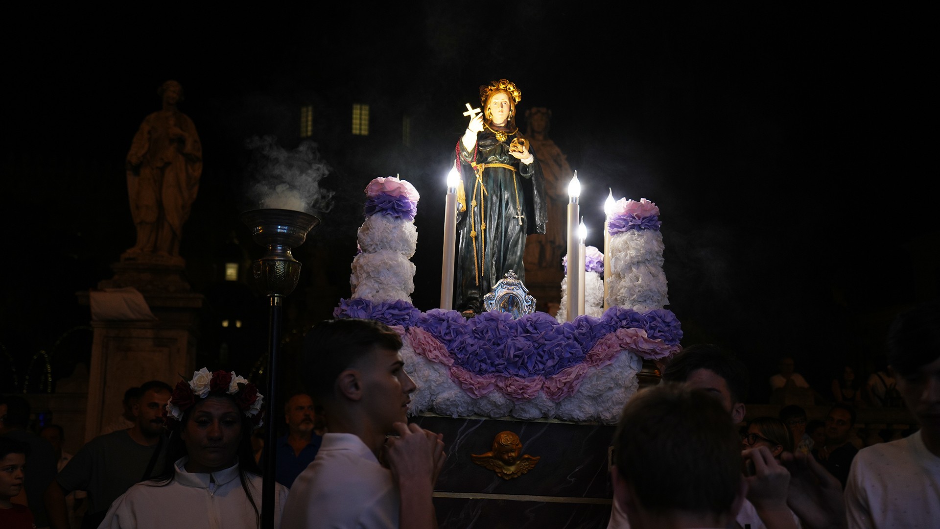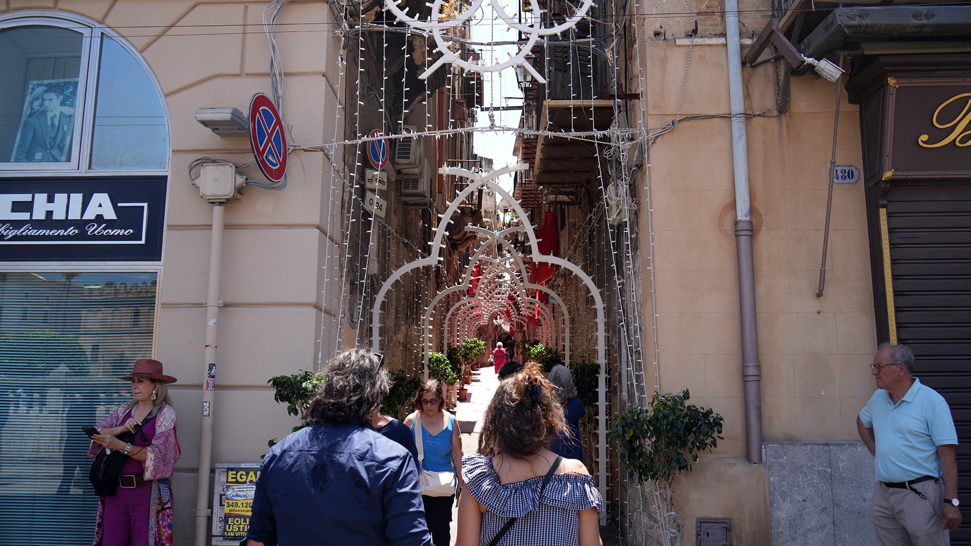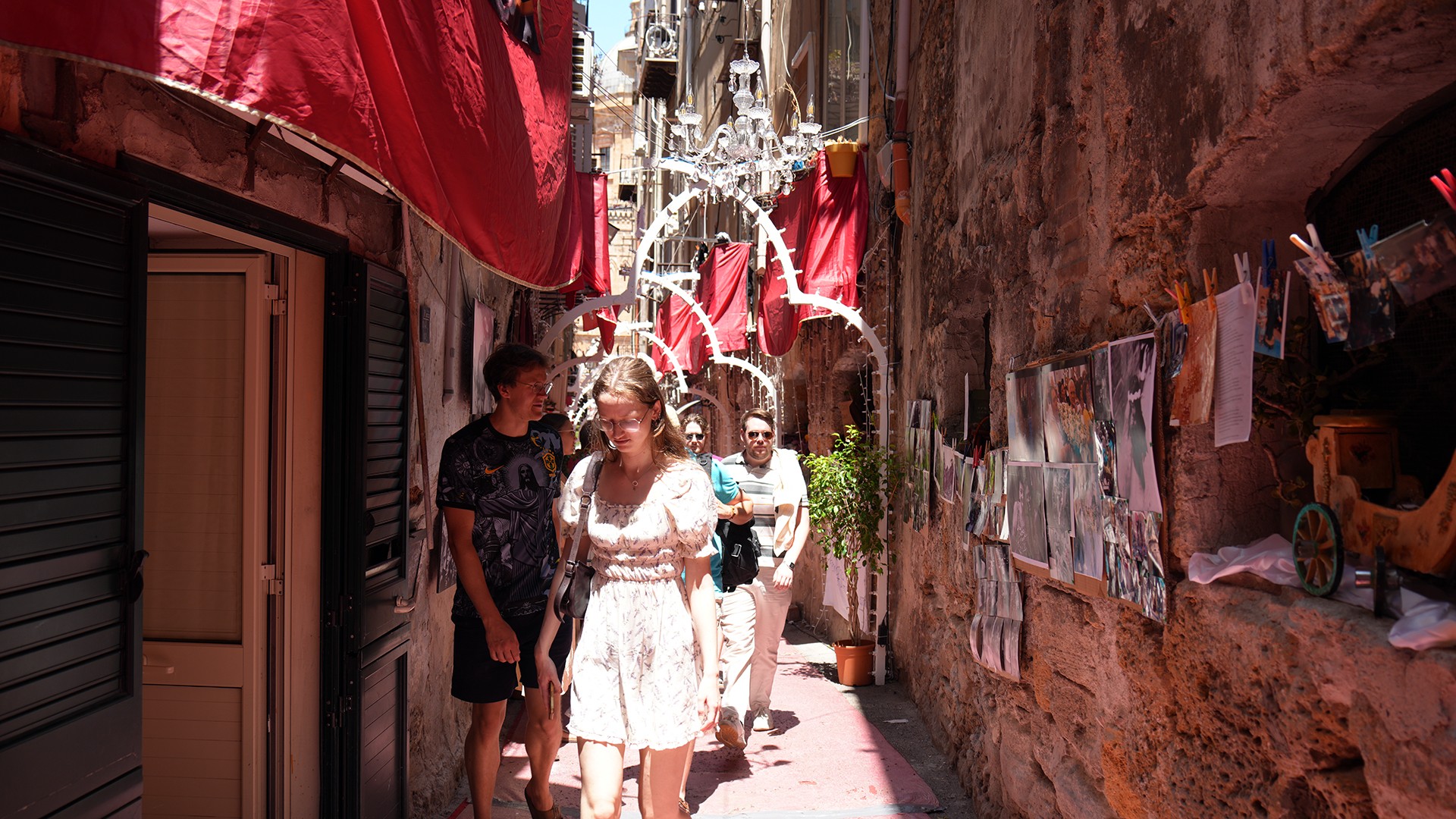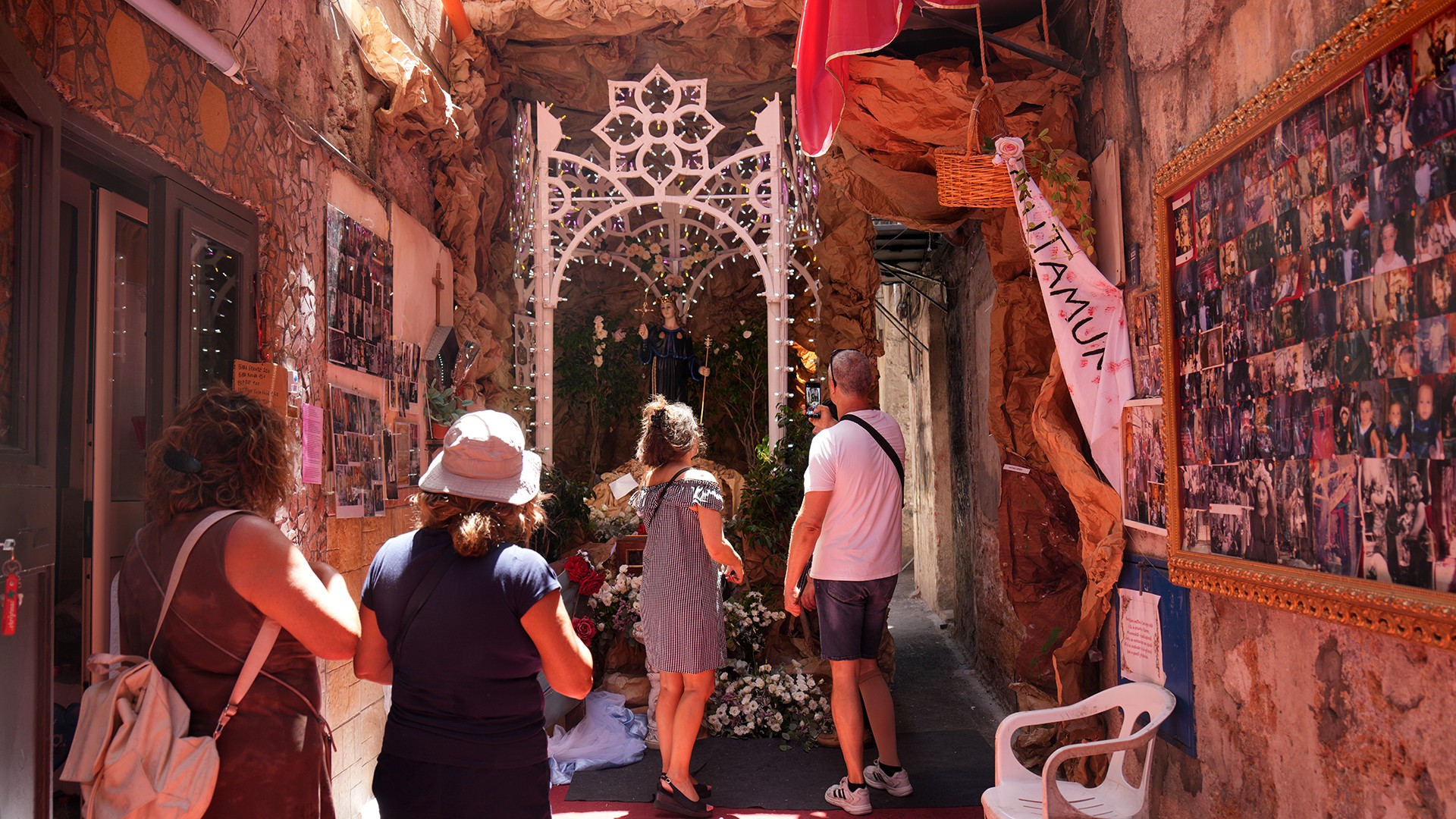 Durante i giorni del Festino, migliaia di devoti e no, turisti e curiosi percorrono il vicolo, in uno spazio tempo scandito da luminarie e testimonianze devozionali, amorevolmente accolti dai suoi abitanti, fino all’altare di solito posto nella simulazione della grotta sul Monte Pellegrino, soffermandosi in preghiera, anche laica, come dimostrano le immagini che seguono